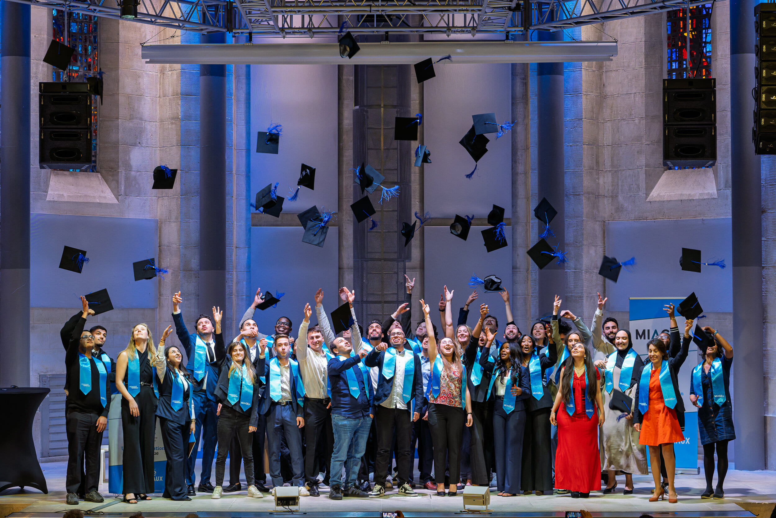 A l'université de Bordeaux, la formation MIAGE regroupe un parcours préparatoire de niveau L3 (informatique de gestion) et deux parcours de Master :